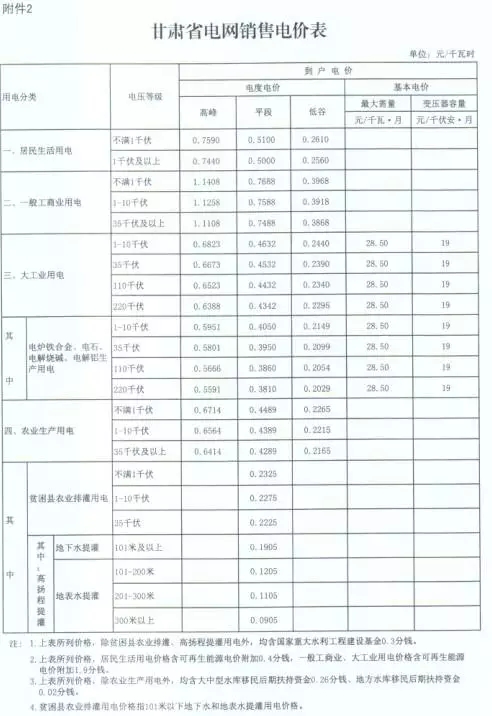2017-2019年監(jiān)管周期內(nèi)甘肅電網(wǎng)分類別分電壓等級輸配電價標(biāo)準(zhǔn)詳見附件1。輸配電價改革降價空間用于降低省內(nèi)大工業(yè)用電和一般工商業(yè)用電價格。