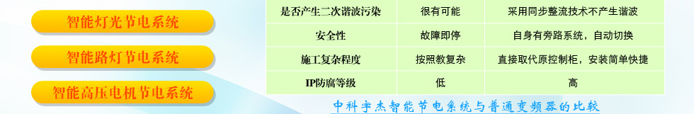 為此中科宇杰公司向社會(huì)推出節(jié)能環(huán)保先進(jìn)技術(shù)與高效服務(wù)模式的概念。擁有了八大體系節(jié)電系統(tǒng)和完善的節(jié)能服務(wù)杰節(jié)模式,為企業(yè)進(jìn)行節(jié)能改造能夠穩(wěn)定的達(dá)到節(jié)電需求。下面中科宇杰來分別介紹下公司的八大節(jié)電系統(tǒng)和各自的特點(diǎn):(如下圖)