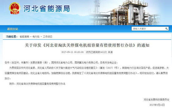 關(guān)于印發(fā)《河北省淘汰關(guān)停煤電機組容量有償使用暫行辦法》的通知