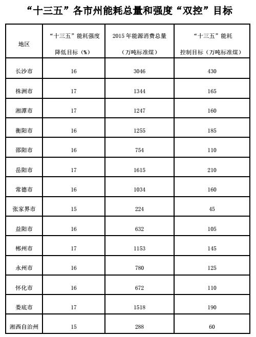 湖南省"十三五"節(jié)能減排綜合工作方案