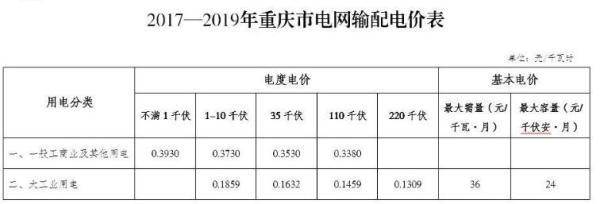 重慶電網(wǎng)2017—2019年分電壓等級輸配電價詳見附表。國網(wǎng)重慶市電力公司執(zhí)行此輸配電價標準。