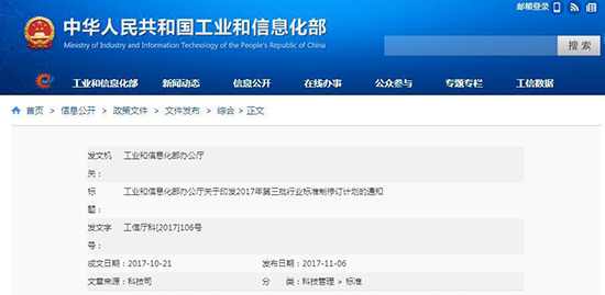 工信部2017年第三批行業(yè)標(biāo)準(zhǔn)制修訂計劃 涉及多項環(huán)保標(biāo)準(zhǔn)