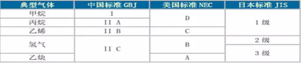 (2)氣體或蒸氣爆炸性混合物等級的劃分,分為ⅡA、ⅡB、ⅡC三種,這些等級的劃分主要是依照最大試驗(yàn)安全間隙(MESG)或最小點(diǎn)燃電流(MICR)來區(qū)分的。