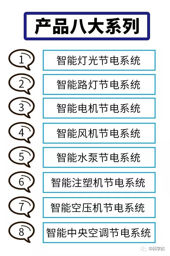 中科宇杰的產(chǎn)品以無縫式嵌入和智能化為核心,特別針對(duì)用能單位設(shè)備的特點(diǎn),在完全不影 響用能單位設(shè)備正常運(yùn)行和改變?cè)O(shè)備運(yùn)行參數(shù)的前提下,達(dá)到節(jié)電的目的,實(shí)現(xiàn)用能設(shè)備和中科宇杰節(jié)電機(jī)的無縫銜接,經(jīng)過十多年發(fā)展,中科宇杰的產(chǎn)品已經(jīng)形成了8大體系。