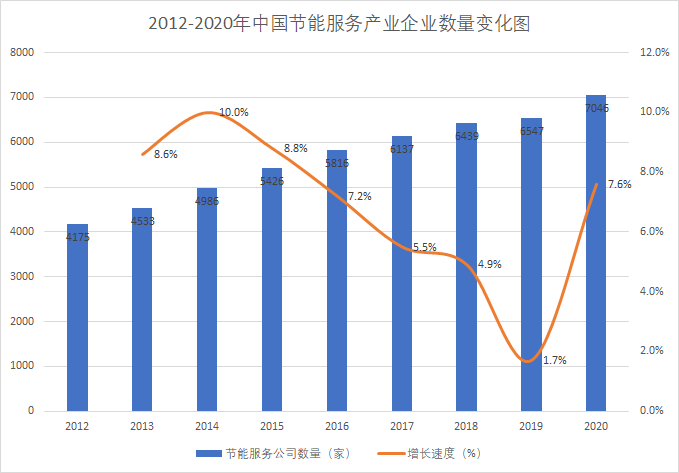 2012-2020年,全國從事節(jié)能服務業(yè)務的企業(yè)數量逐年上升,2020年增速有所提升。