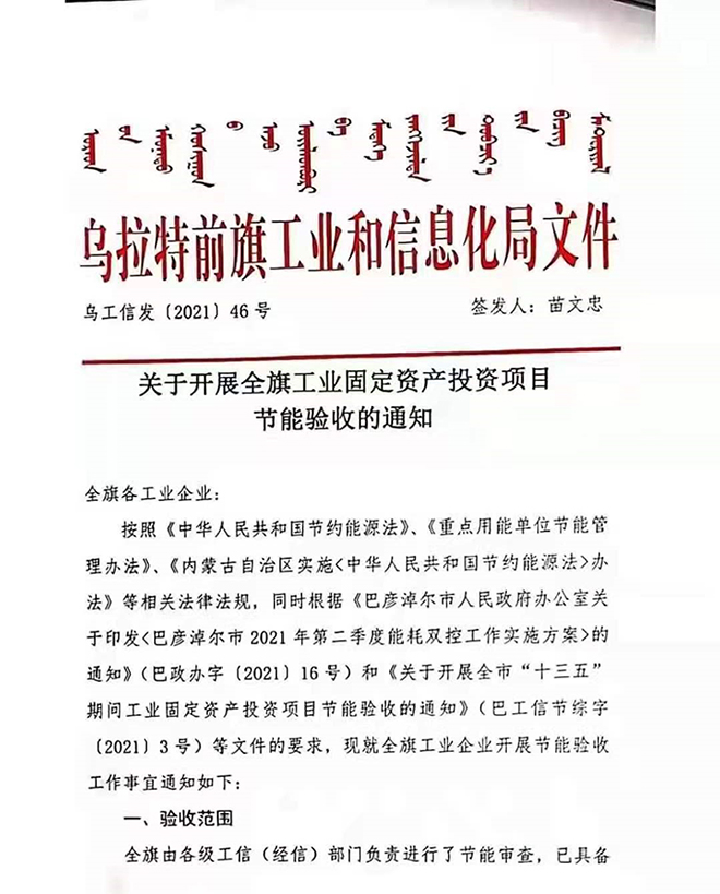 烏拉特前旗:對全旗工業(yè)企業(yè)開展節(jié)能審查驗收,對期限內驗收不通過的企業(yè),按能耗“雙控”工作違規(guī)項目有關規(guī)定執(zhí)行停產(chǎn)整改。