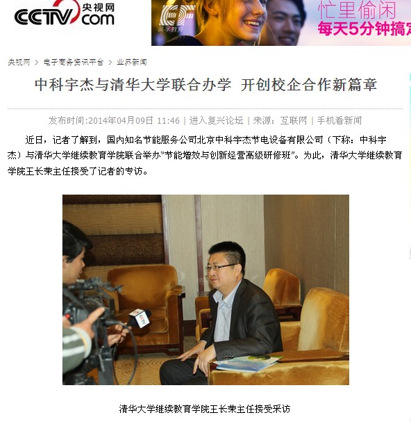 ????? 近日,記者了解到,國內(nèi)知名節(jié)能服務(wù)公司北京中科宇杰節(jié)電設(shè)備有限公司(下稱:中科宇杰)與清華大學(xué)繼續(xù)教育學(xué)院聯(lián)合舉辦“節(jié)能增效與創(chuàng)新經(jīng)營高級研修班”。為此,清華大學(xué)繼續(xù)教育學(xué)院王長榮主任接受了記者的專訪。