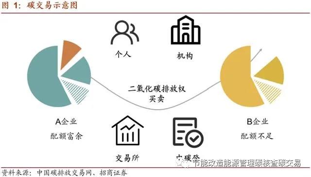碳交易市場是由政府通過對能耗企業(yè)的控制排放而人為制造的市場。通常情況下,政府確定一個碳排放總額,并根據(jù)一定規(guī)則將碳排放配額分配至企業(yè)。如果未來企業(yè)排放高于配額,需要到市場上購買配額。與此同時,部分企業(yè)通過采用節(jié)能減排技術(shù),最終碳排放低于其獲得的配額,則可以通過碳交易市場出售多余配額。雙方一般通過碳排放交易所進行交易。