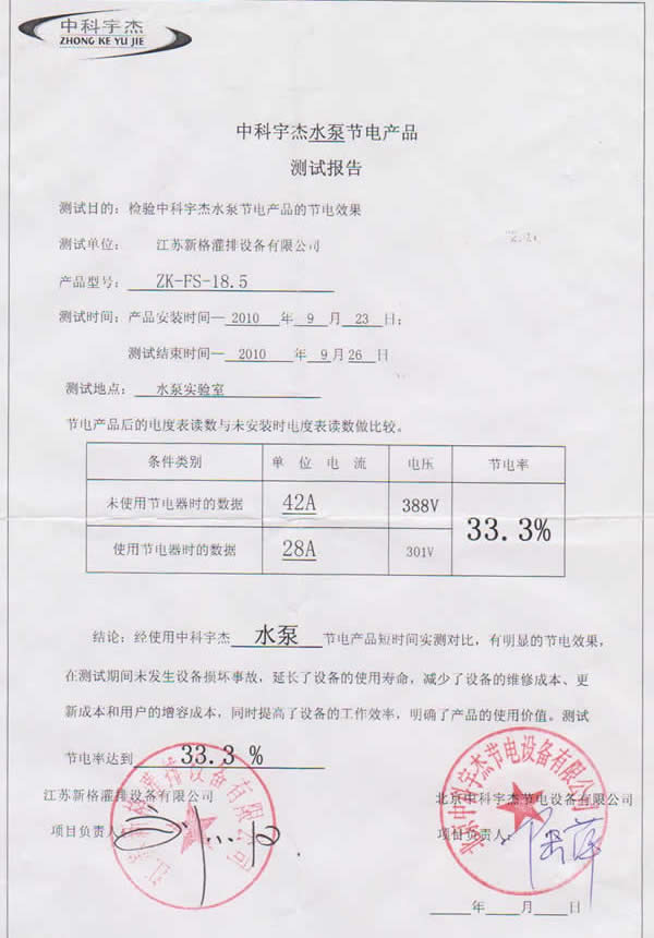 經(jīng)過嚴(yán)格的測試和同期的用電對比,節(jié)能效率達到33.3%,節(jié)能效率超出了技術(shù)論證的結(jié)果。中科宇杰的技術(shù)實力得到權(quán)威專家的認(rèn)同。